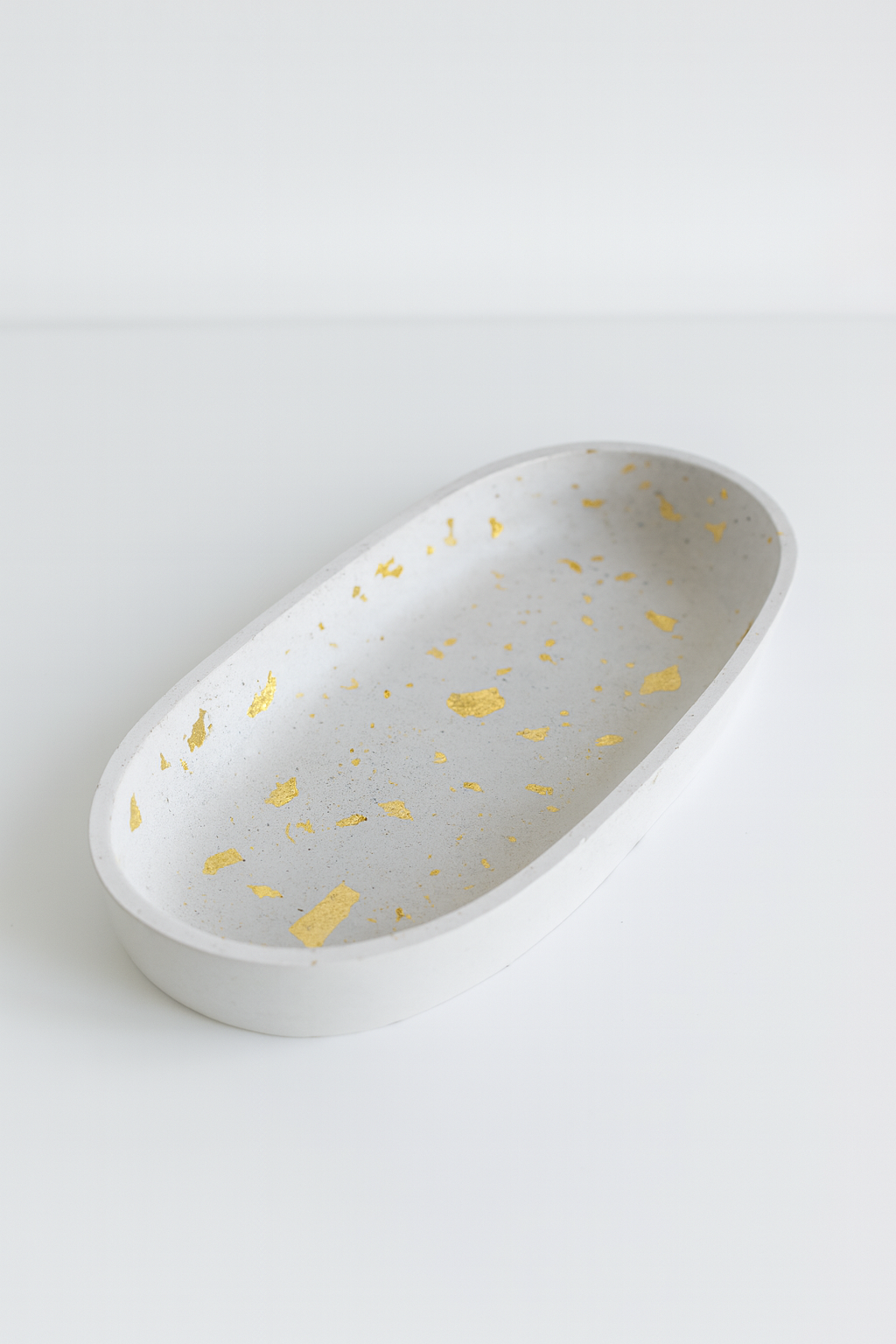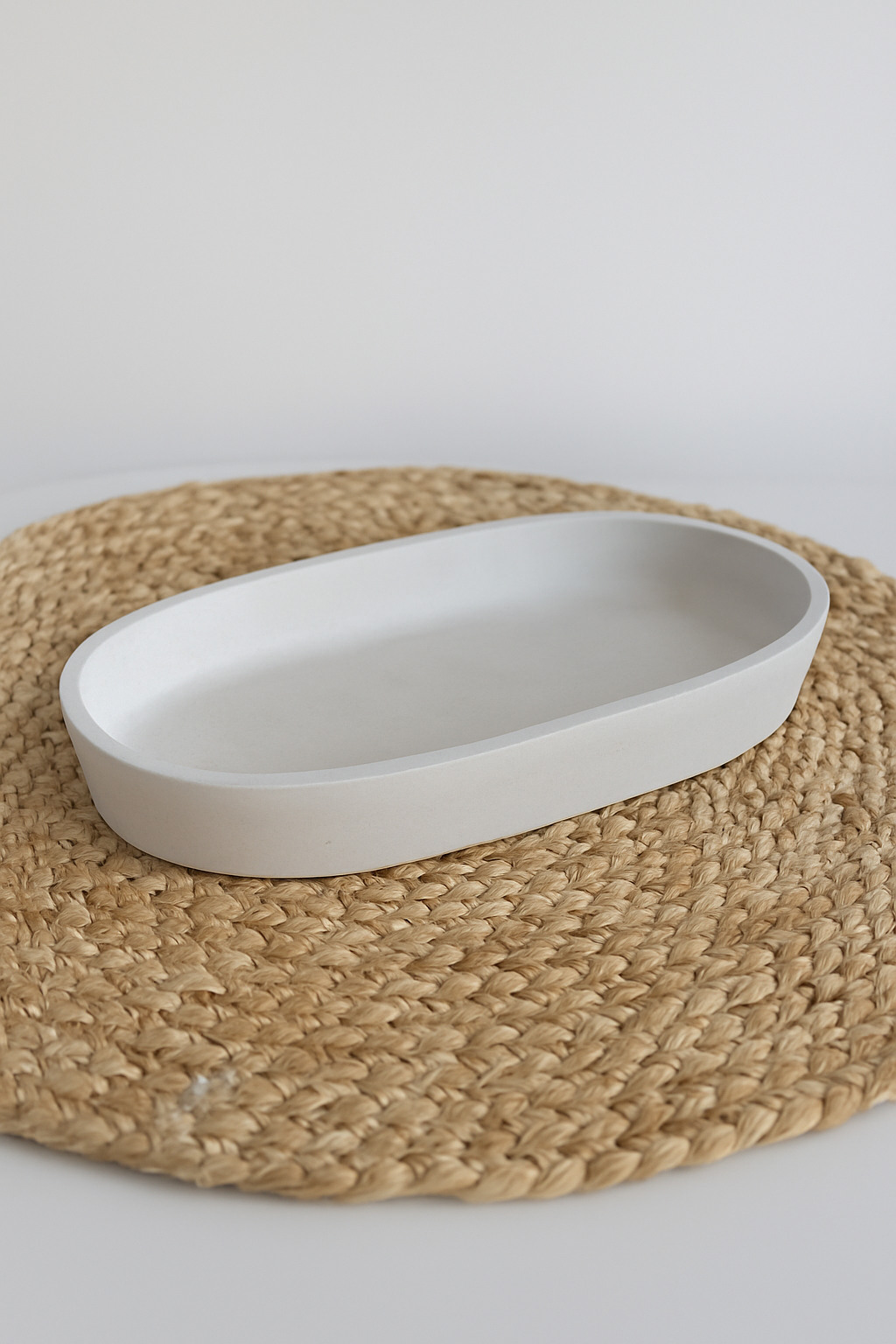 This elegant, handcrafted boat shaped tray is crafted from smooth concrete, showcasing a clean and timeless aesthetic. Ideal for neatly storing daily essentials such as jewelry, candles, or keys, it also serves as a tasteful decorative accent for any space. Its understated design and neutral shade easily complement both contemporary and traditional settings, adding subtle sophistication wherever it's placed.