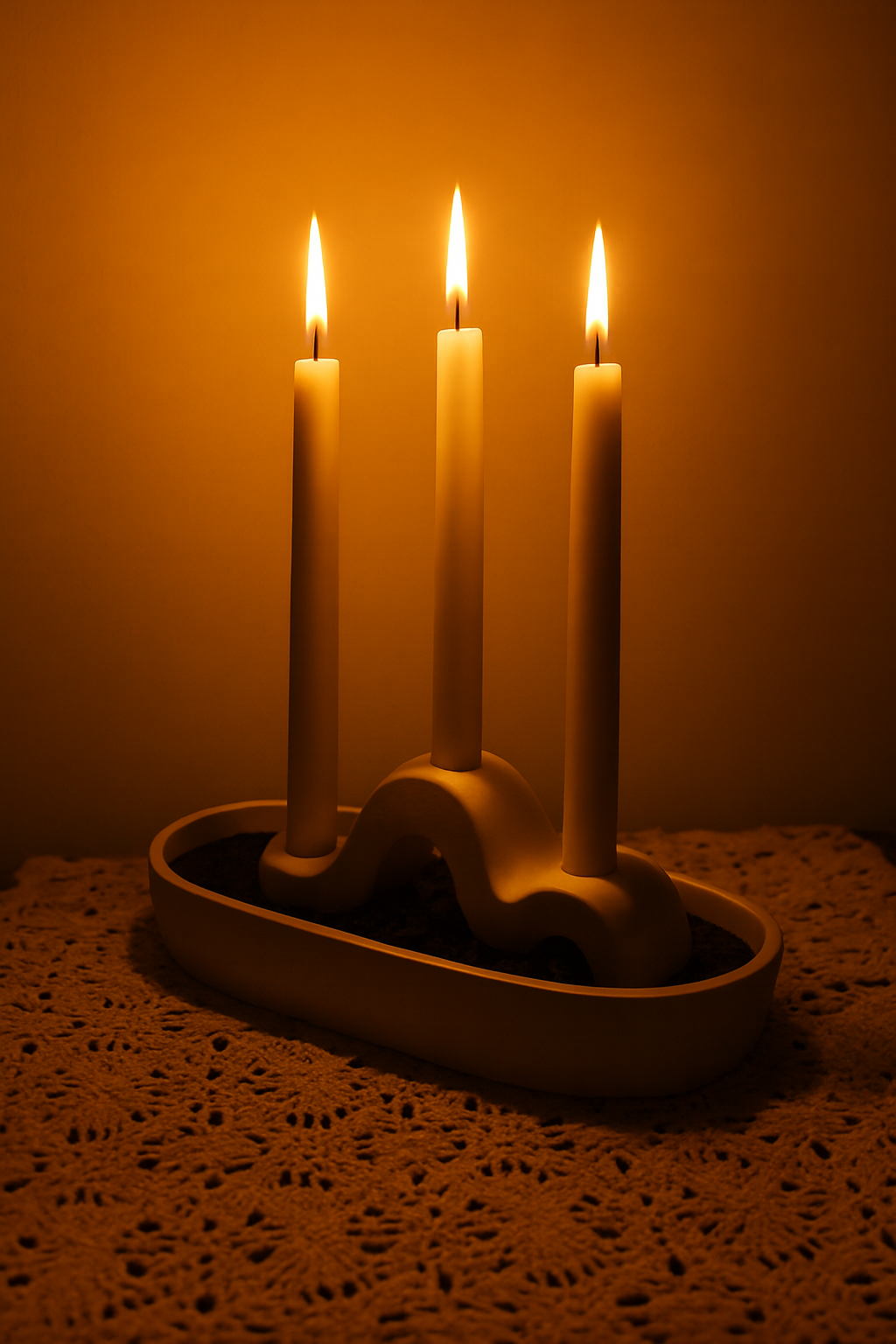 A sculptural trio of glowing forms, standing tall as a centerpiece of artistry and warmth, filling your room with the romantic allure of cashmere fragrance.