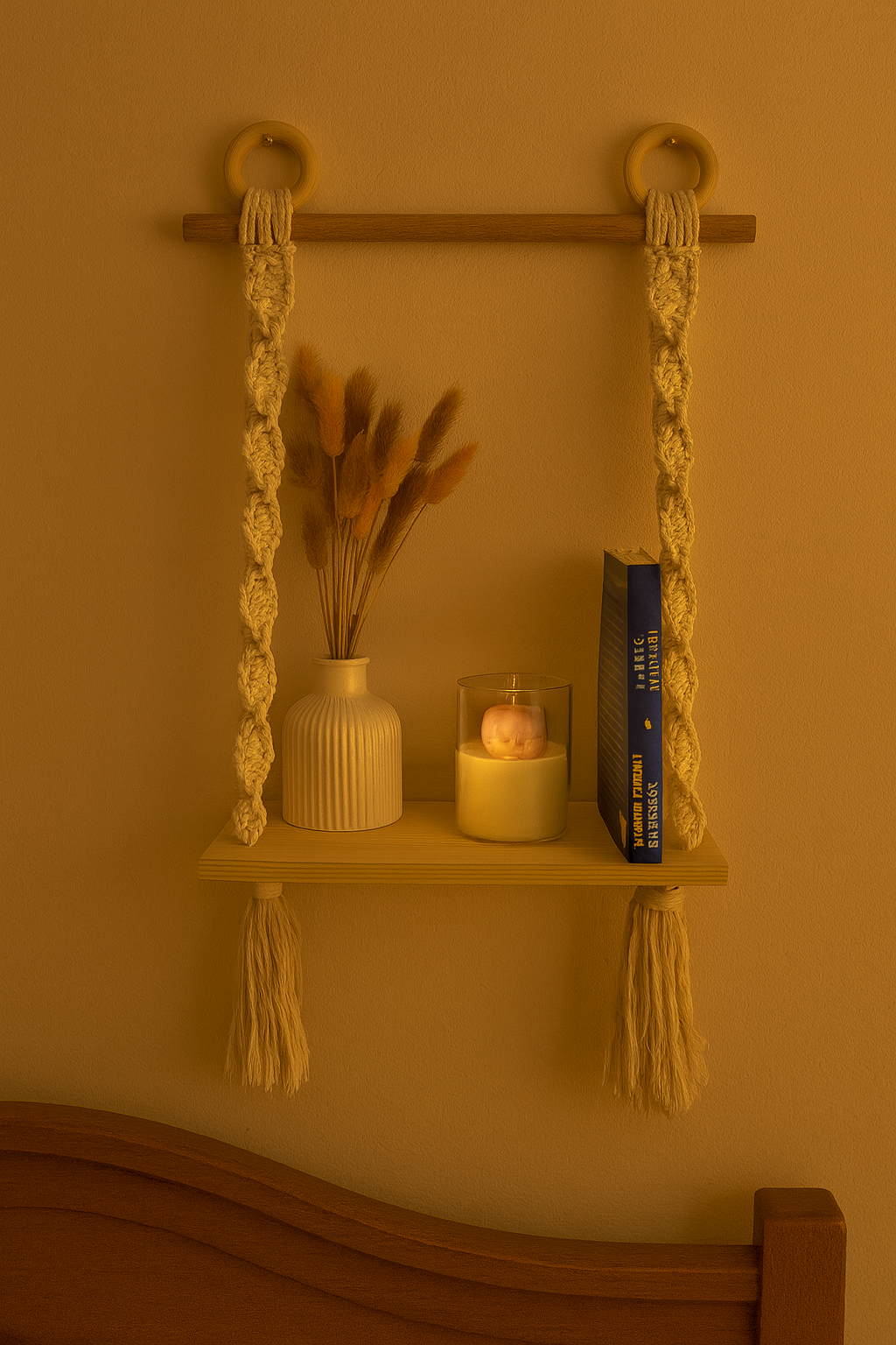 Evening Glow is a cozy shelf set designed for moments of rest and reflection. A warm candlelight paired with soft dried florals transforms any corner into a serene retreat. Minimal yet inviting, Evening Glow fills your space with warmth and calm, perfect for winding down with a book or embracing quiet nighttime rituals.