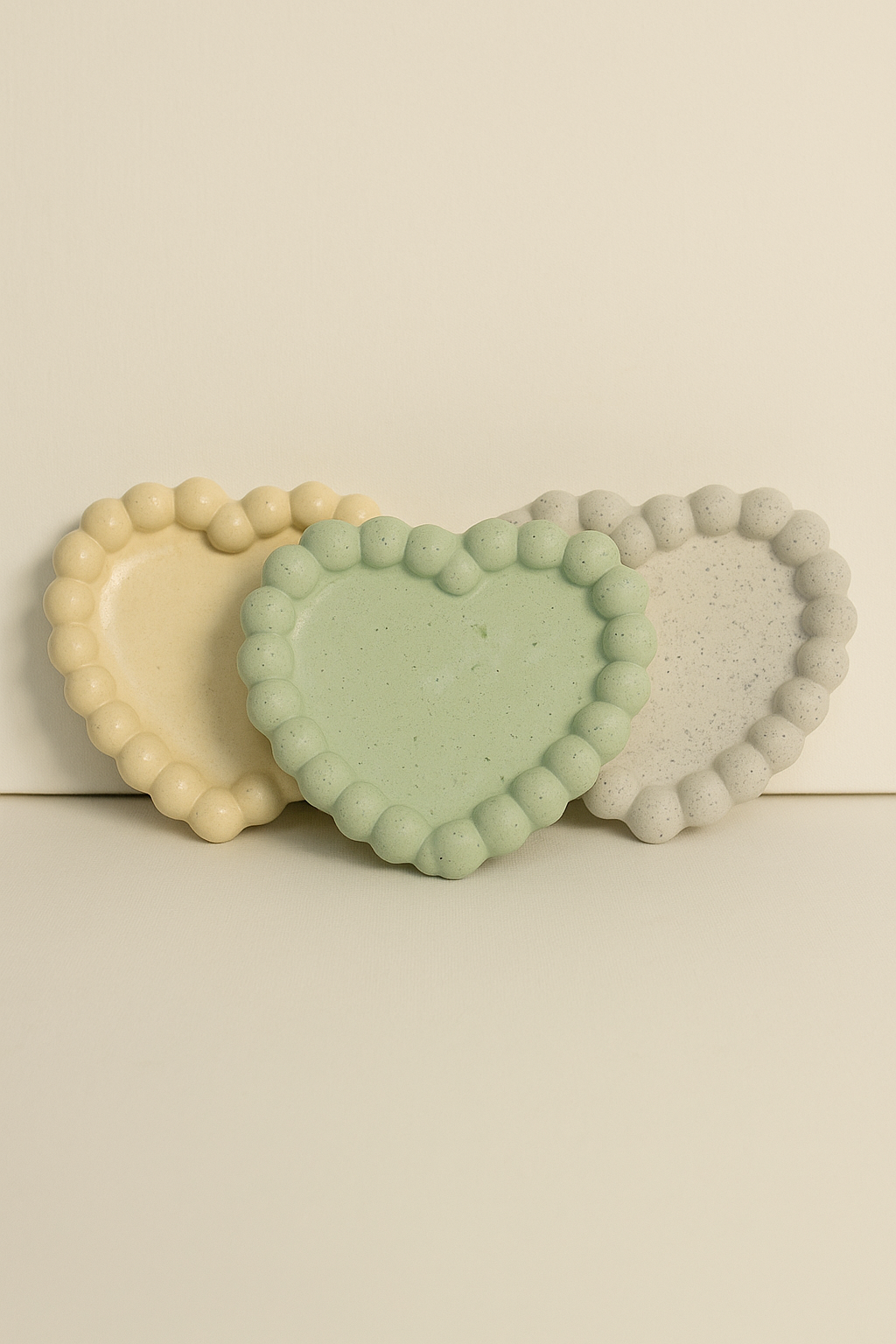 A charming heart-shaped tray with beaded edges, perfect for holding jewelry, candles, or small décor. Crafted with a soft green centerpiece and neutral tones, this piece adds elegance and warmth to any room.