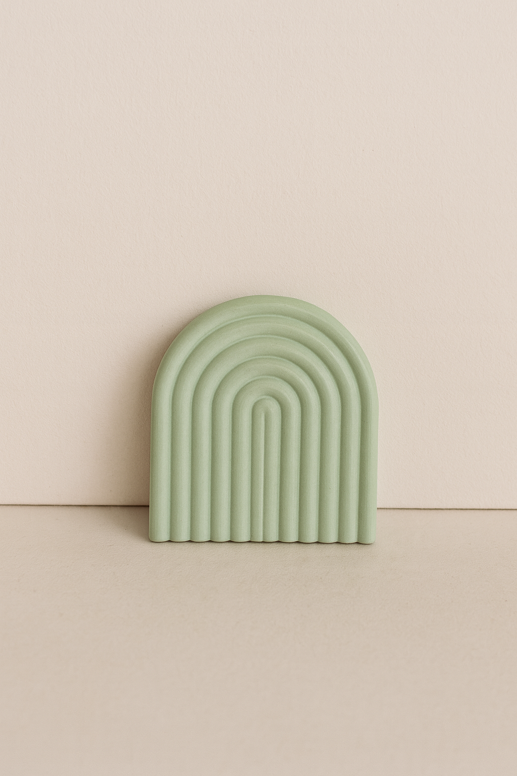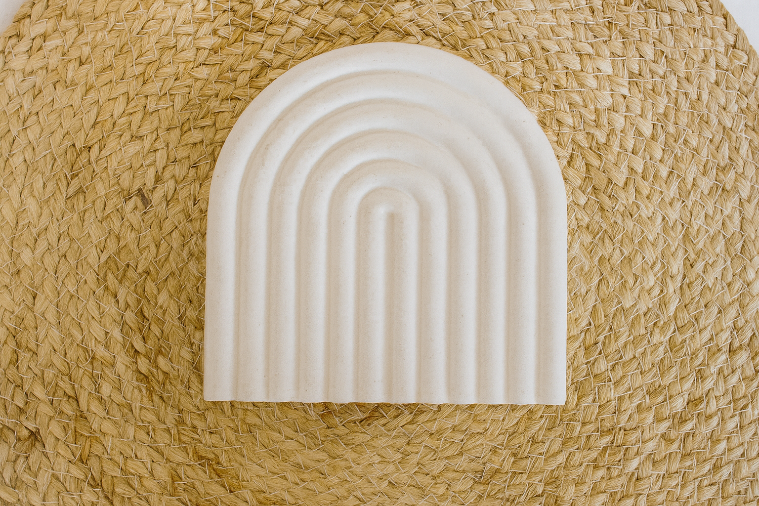A minimalist arch shaped tray crafted with smooth lines and a soft matte finish. Its concentric curves bring a sense of balance and harmony, making it perfect as a decorative accent or for holding small essentials like jewelry, candles, or keys. The neutral tone and clean design allow it to blend seamlessly into modern, bohemian, or natural-inspired interiors.