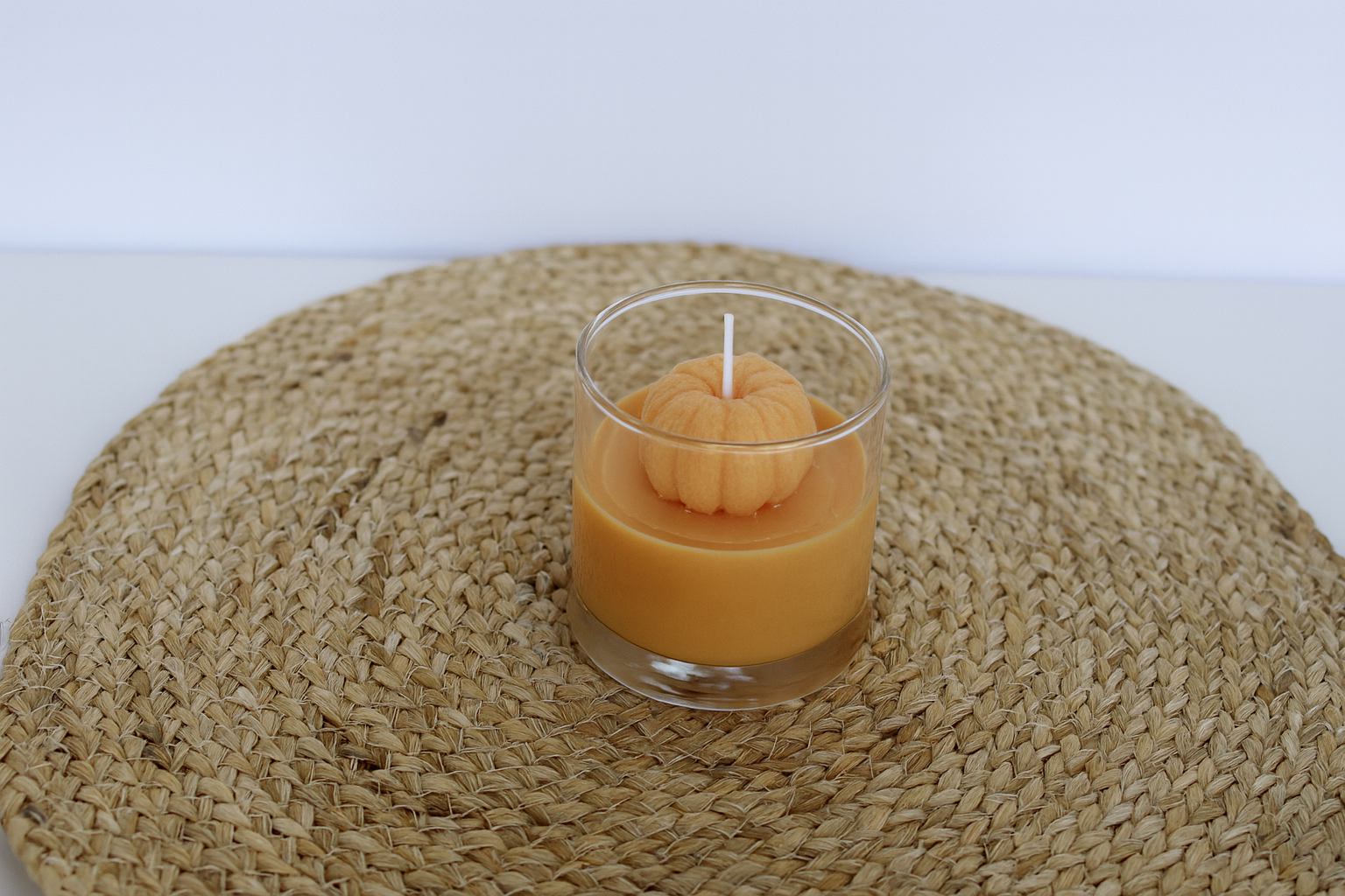 Shaped like a cozy little pumpkin, this candle captures the warmth and charm of autumn in a glass jar. Its soft glow and playful design make it a perfect seasonal accent. Ideal for creating a welcoming atmosphere or gifting a touch of fall magic