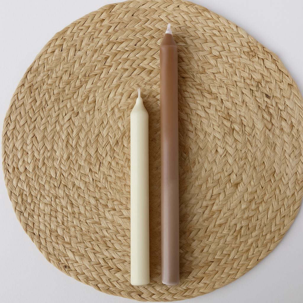A refined set of two tapered candles designed to bring elegance and balance to any table or décor. Their slender form and smooth finish make them perfect for both everyday use and special occasions, creating a soft, ambient glow that enhances your space with timeless charm. scented cashmere wood and amber.